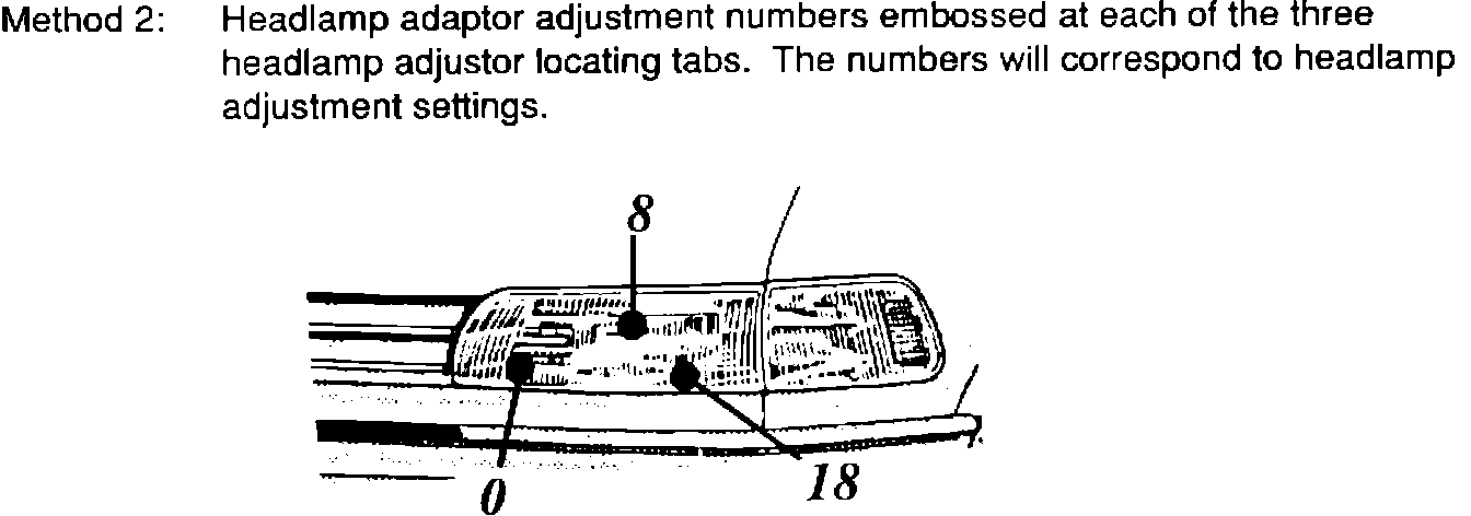 The following are the two methods used by Toyota to identify aerodynamic headlamp adaptor settings: