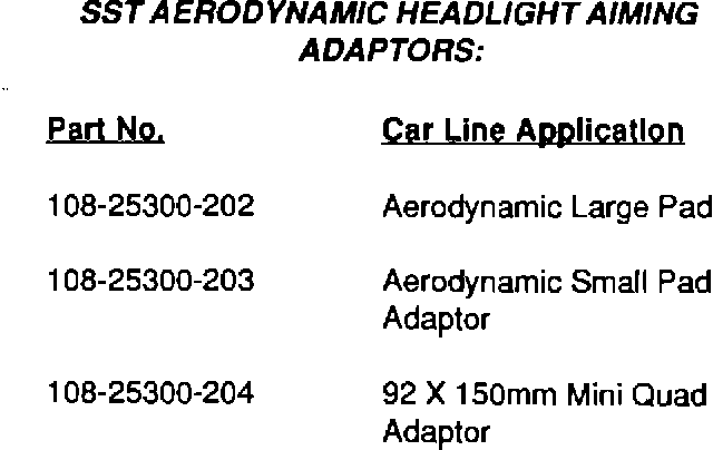 There are two types of SST adaptors (large and small pad) which must be used to properly set headlamps needing adjustment: