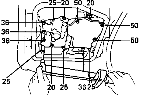 1. Clean area around pan, then drain transmission fluid, then remove engine undercover.