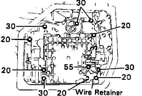5. Position valve body in installation position, then insert and finger tighten attaching bolts. Tighten to specifications. Attaching bolt lengths (mm) are indicated in, Figs. 5 through 8.