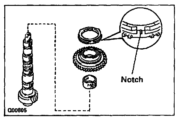 HINT: The synchronizer ring with the notch is for use only with the 1st gear.