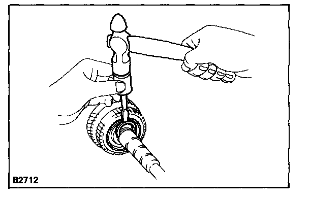 b. Using a screwdriver and hammer, tap in the snap ring.