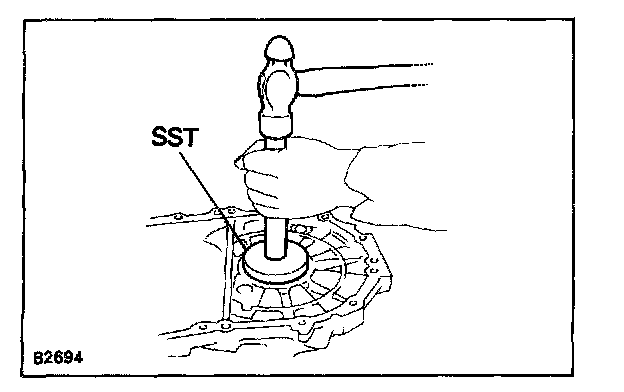 d. Using SST and a hammer, drive in a new outer race.