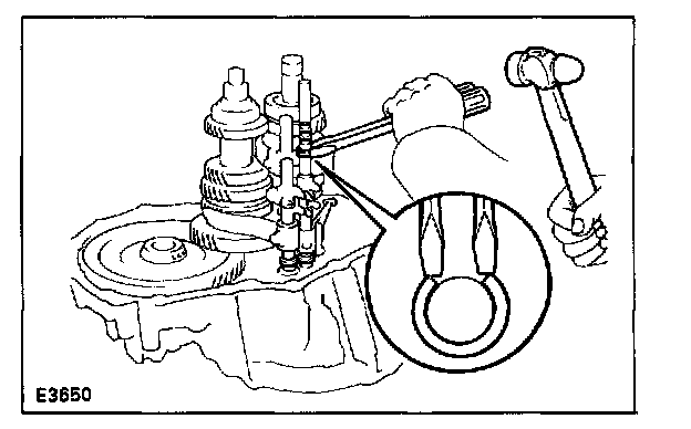 a. Using two screwdrivers and a hammer, tap out the three snap rings.