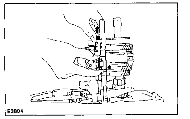 c. Pull up No.3 shift fork shaft, remove the No.2 fork shaft and the shift head.