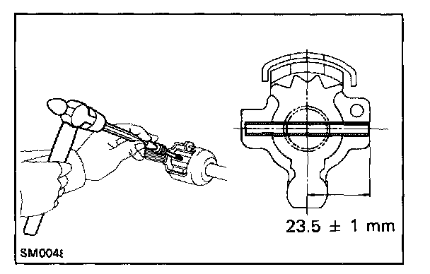 c. Using a pin punch and hammer, drive in the slotted spring pin.