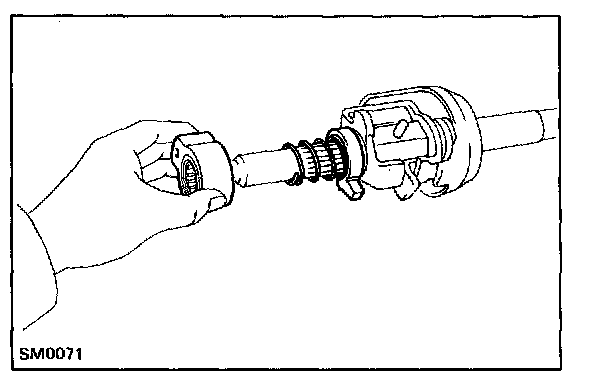 HINT: One of the spline teeth of the shift and select lever shaft has been eliminated. Therefore, be certain to correctly align this portion to the matching portions on the parts during assembly.