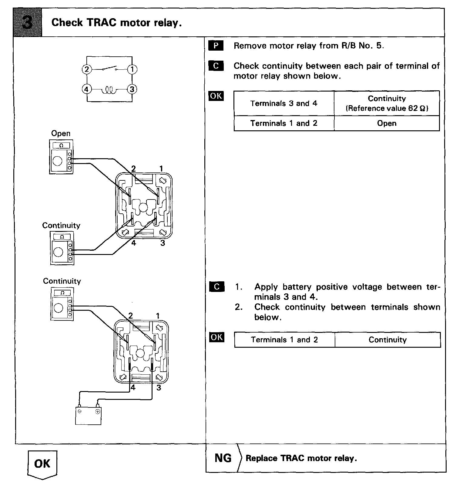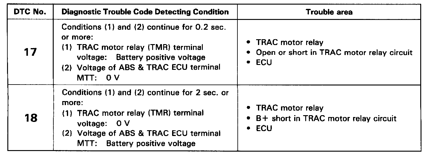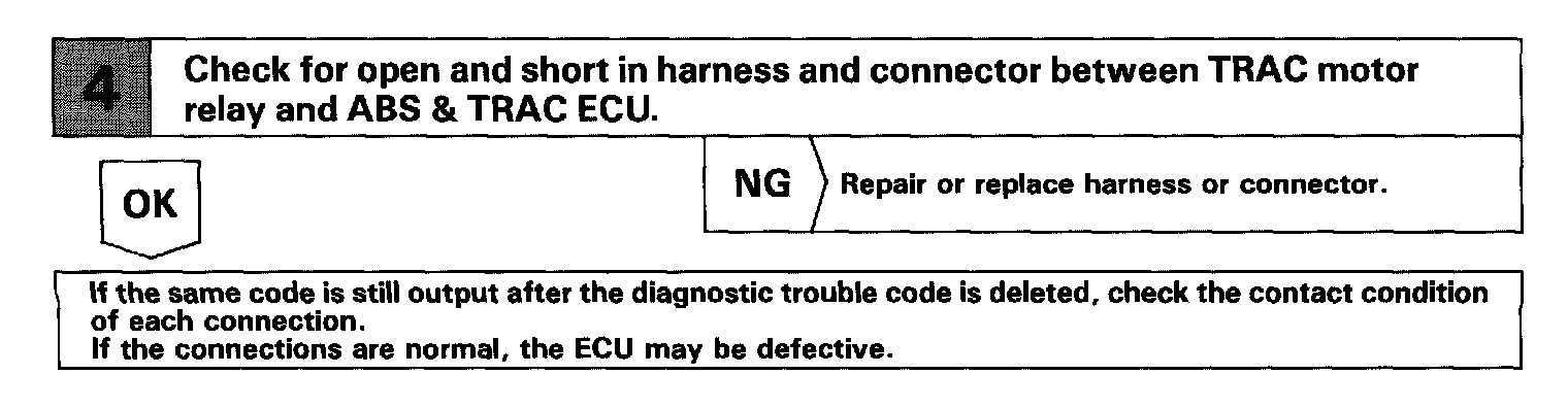 Fail safe function: If trouble occurs in this relay circuit, the ECU cuts off current to the TRAC solenoid relay and prohibits TRAC control.