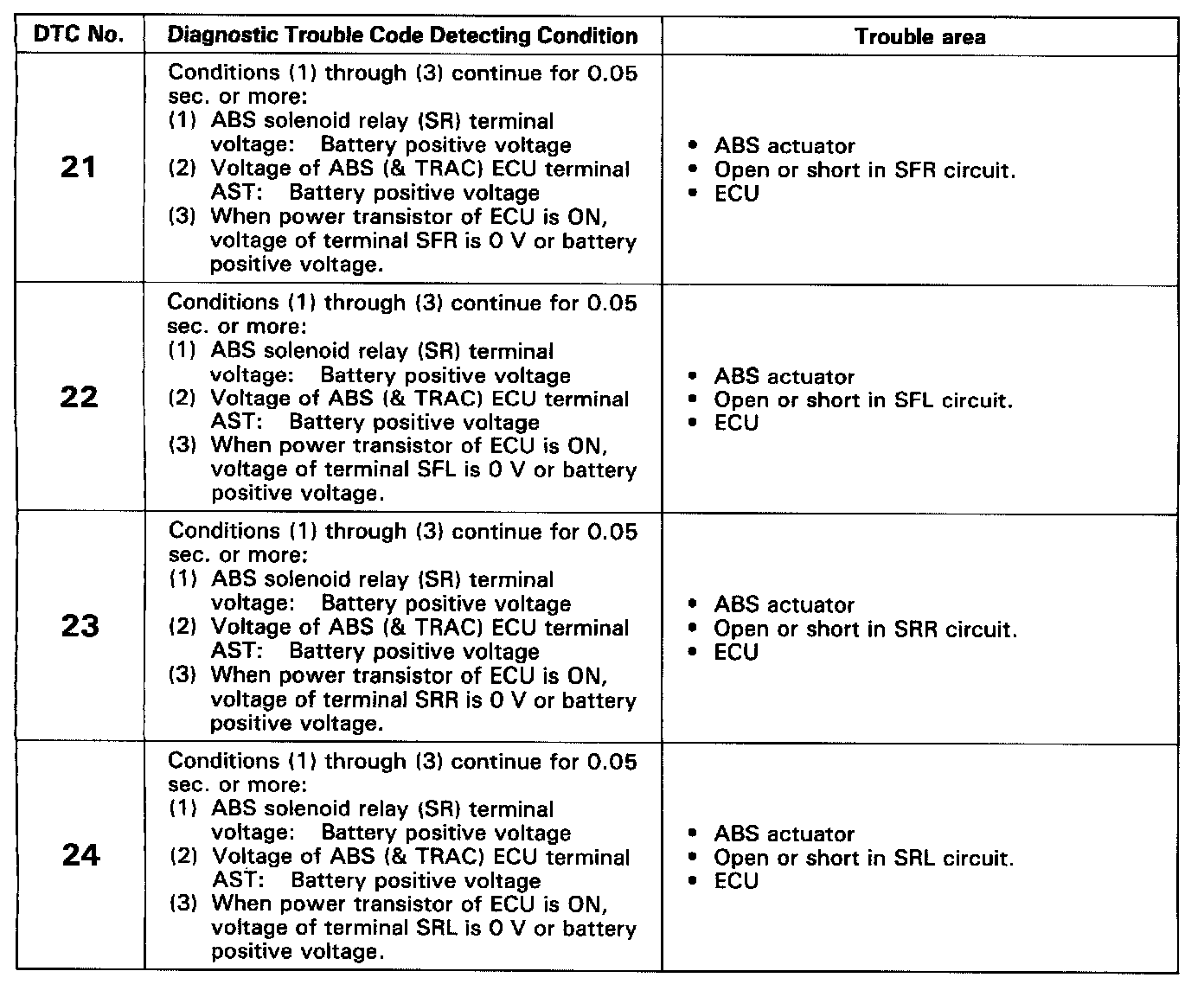DTC 21 ABS & TRAC Actuator Solenoid Circuit