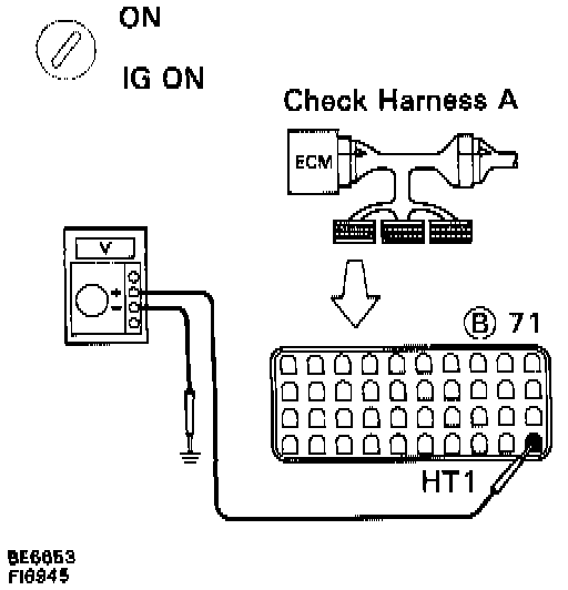 1. CHECK VOLTAGE BETWEEN TERMINAL HT1 OF ECM CONNECTOR AND BODY GROUND.