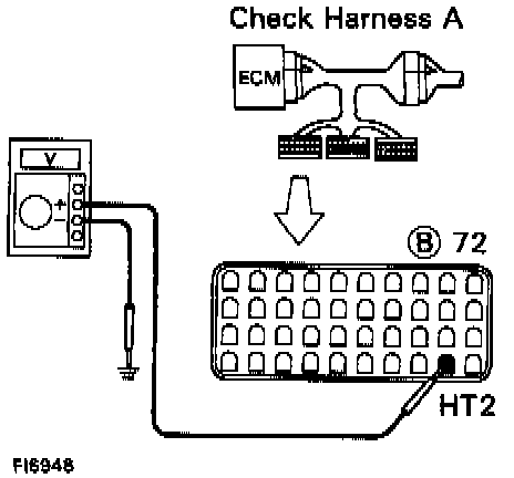 (c) Measure voltage between terminal HT2 of engine control module connector and body ground.