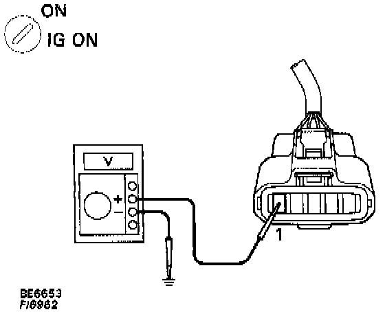 (c) Measure voltage between terminal 1 of mass air flow meter connector and body ground.