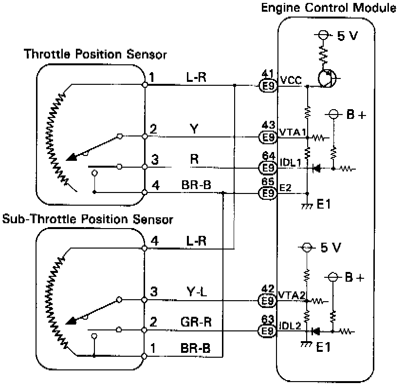 Throttle Position Sensor, Sub-Throttle Position Sensor And Sub-Throttle Actuator Circuit: