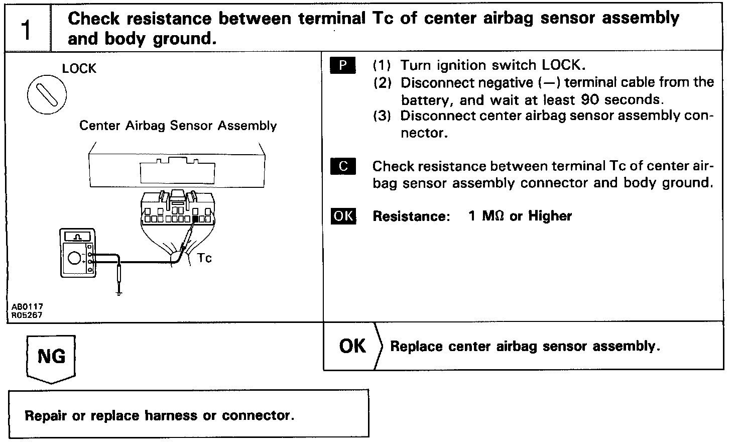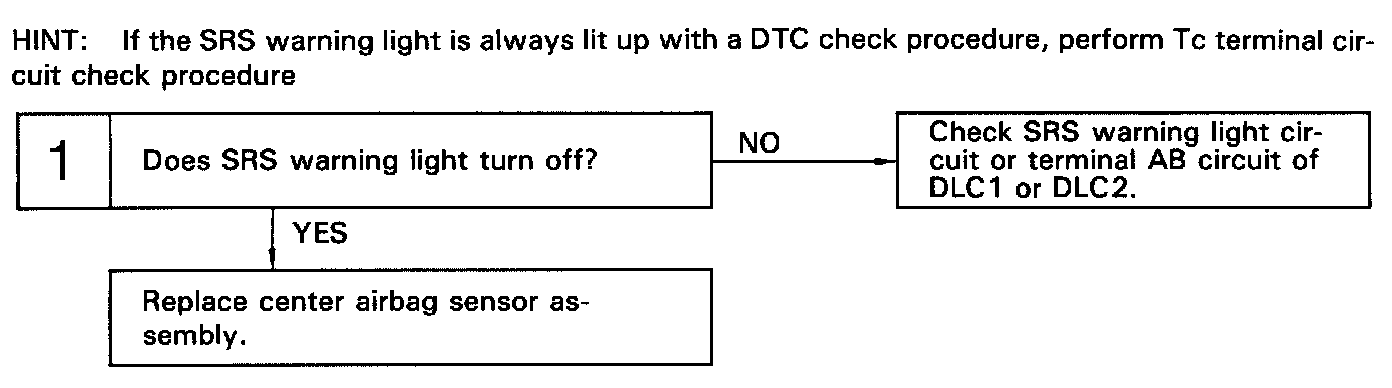 HINT: If the SRS warning light is always lit up with a DTC check procedure, perform Tc terminal circuit check procedure.