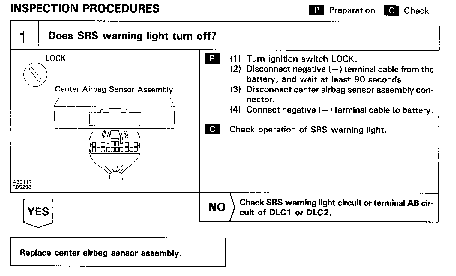 HINT: If the diagnostic trouble code is not displayed or SRS warning light is always lit up with a DTC check procedure, perform the following troubleshooting: