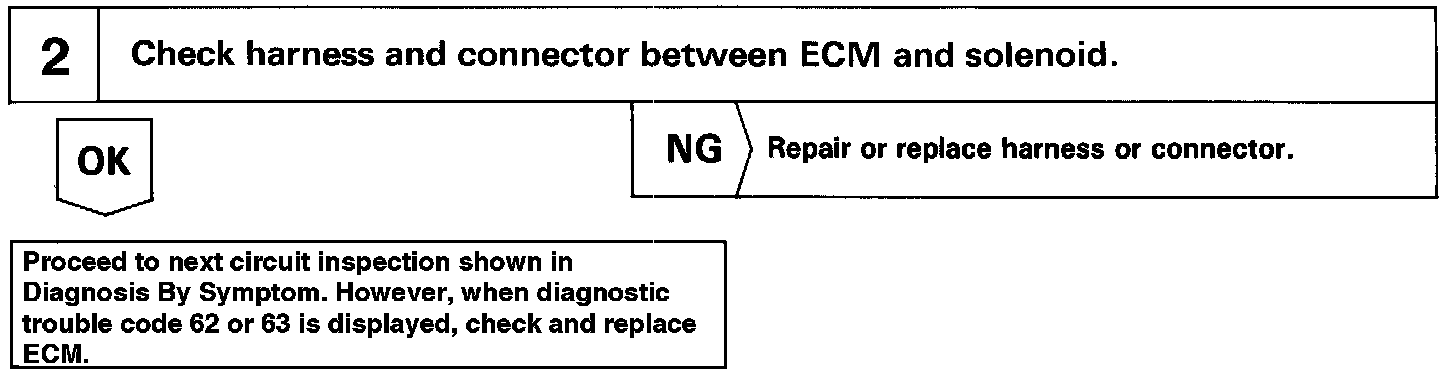 NOTE: Check the No.1 solenoid when diagnostic trouble code 62 is output and check and No.2 solenoid when diagnostic trouble code 63 is output.
