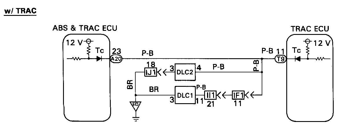 Connecting terminals Tc and E1 of the DLC1 or the DLC2 causes the ECU to display the diagnostic trouble code by flashing the ABS warning light.
