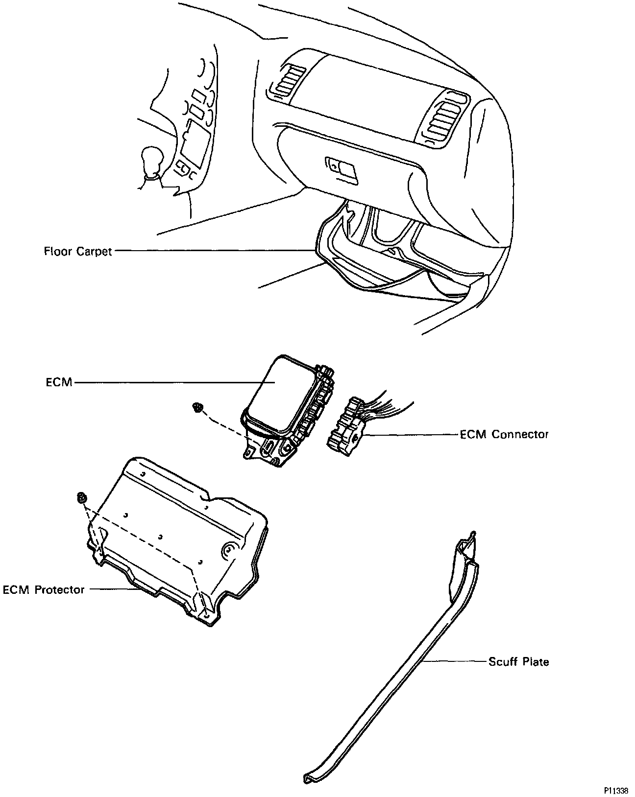 (a) Remove the nut. and disconnect the ECM from the floor panel.