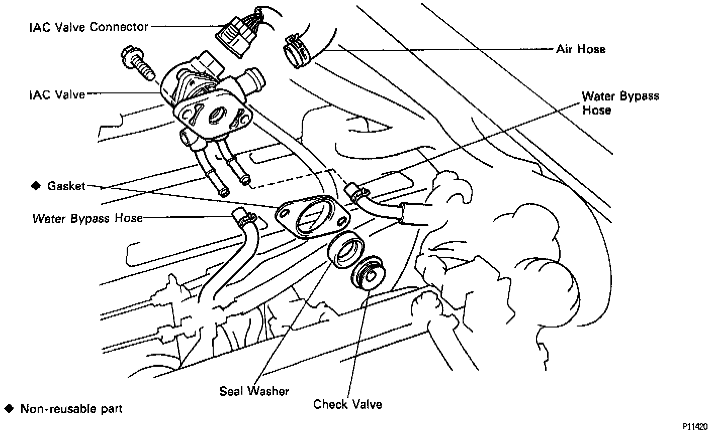(c) Disconnect the following hoses from the IAC valve, and remove the IAC valve: