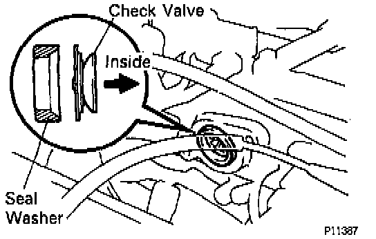 NOTE: Be careful to install the check valve and seal washer in the right direction.