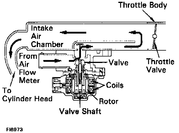 The Idle Air Control Valve is provided on the intake air chamber and intake air bypassing the throttle valve is directed to the idle air control valve through a passage.
