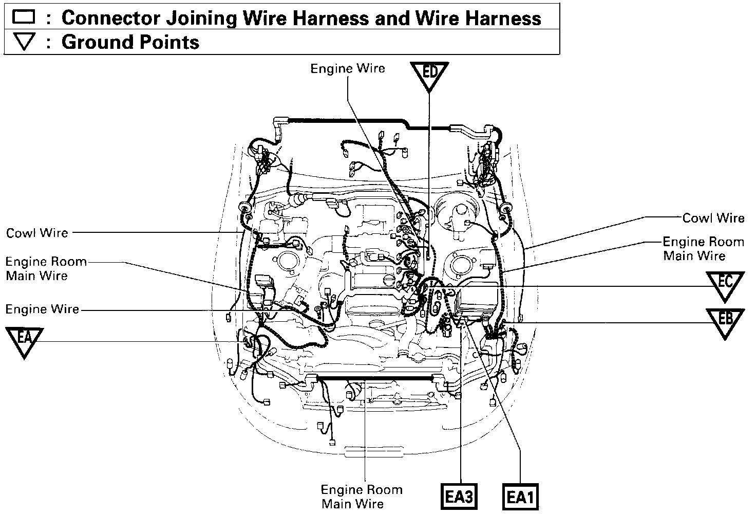 Location Of Connector Joining Wire Harness And Wire Harness, Ground Points (Fig 34):