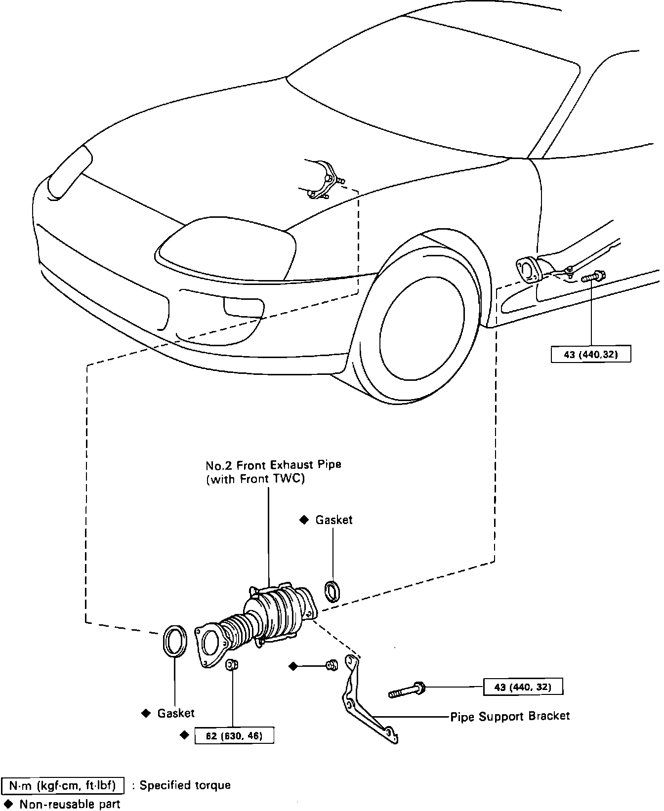 Refer to illustrations for converter replacement. Replace all gaskets and torque all fasteners to specifications.