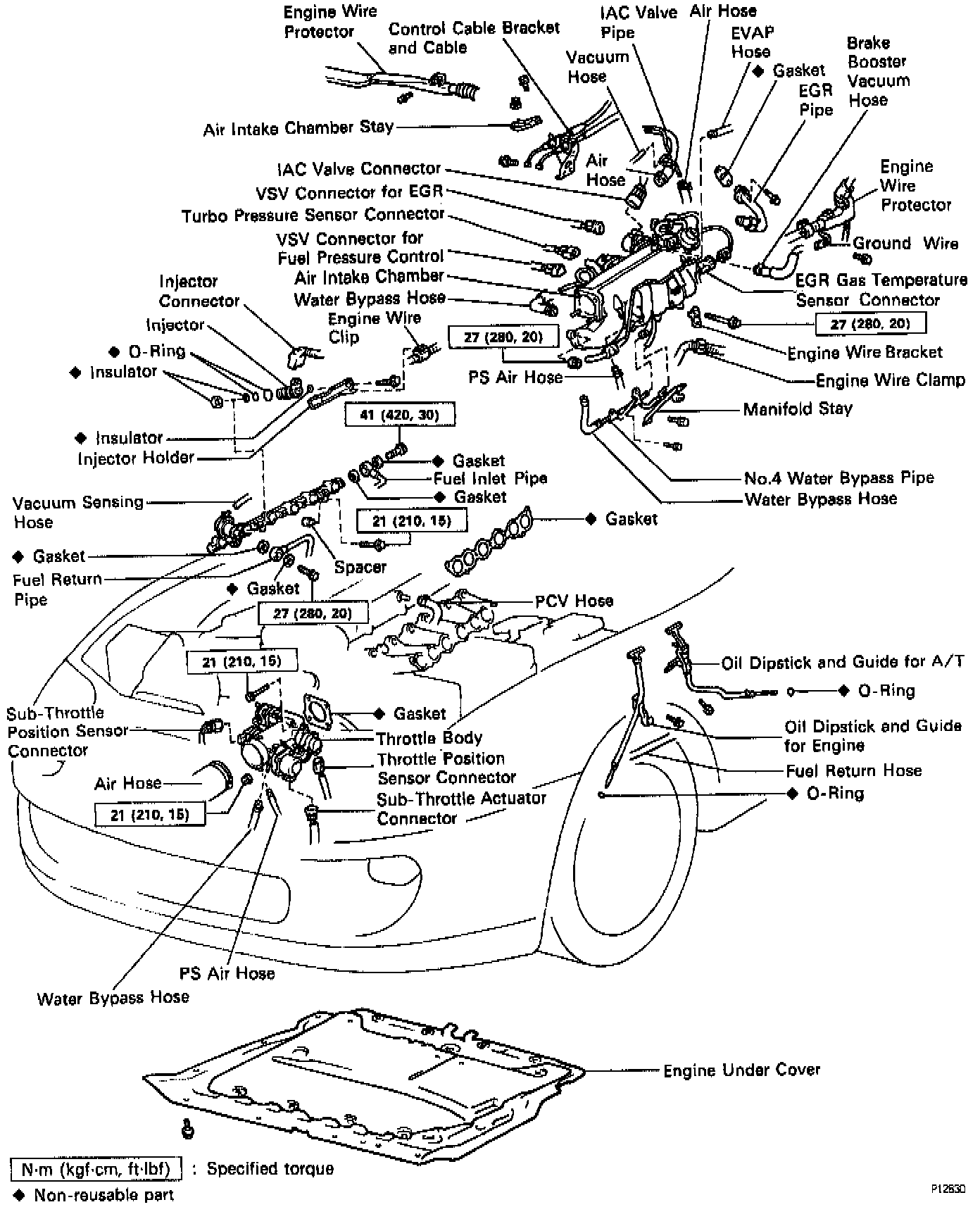 (2) Air hose (from air intake chamber) from vacuum pipe on IAC valve pipe