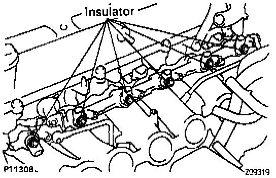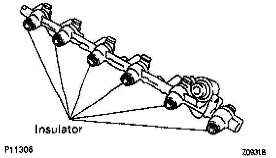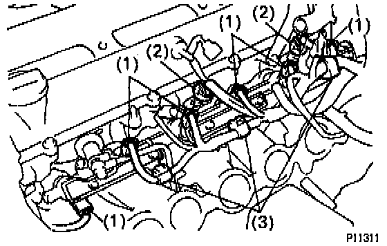 (c) Remove the 2 bolts, the delivery pipe and 6 injectors assembly.