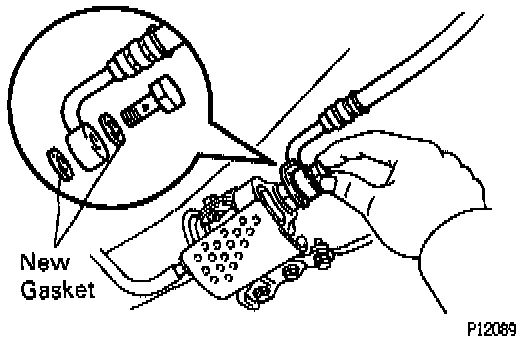 (a) Apply a light coat of engine oil to the flare nut, and tighten the flare nut by hand.