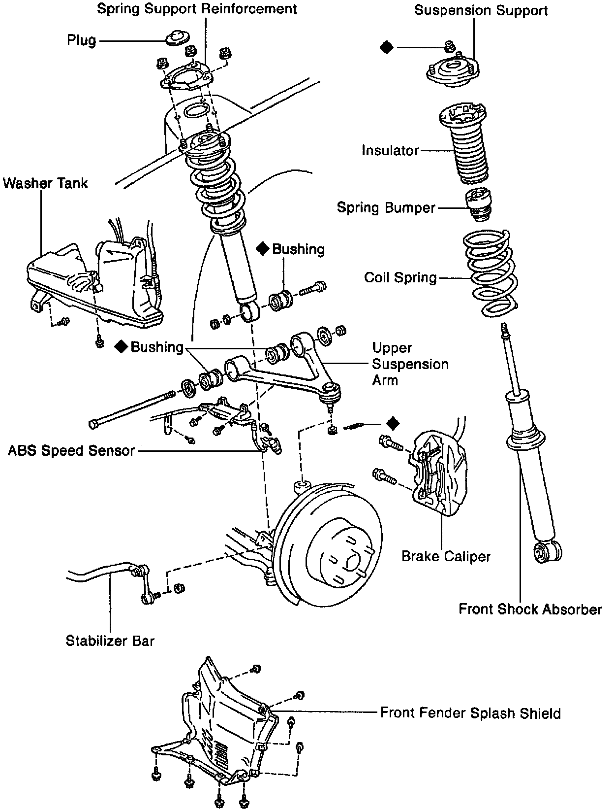 Fig. 4 Front Suspension Strut & Coil Spring Components.: