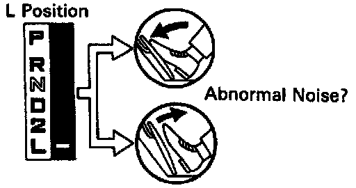 Shift into the L position and while driving with the accelerator pedal held constantly at the full throttle valve opening position. Check the these points: