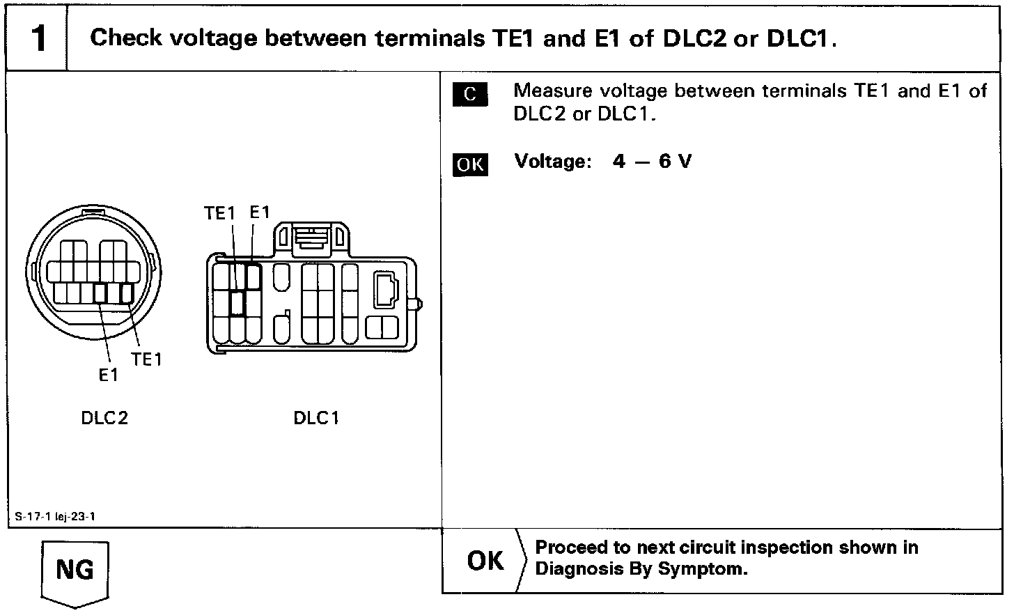ECM displays diagnostic trouble codes using the "O/D OFF" indicator light when terminals TE1 and E1 of the