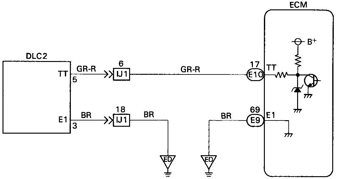 Checks of ECM input and output signals related to the throttle position sensor, brakes, shift position and other circuits can be performed by measuring the voltages at terminal TT of the DLC2.