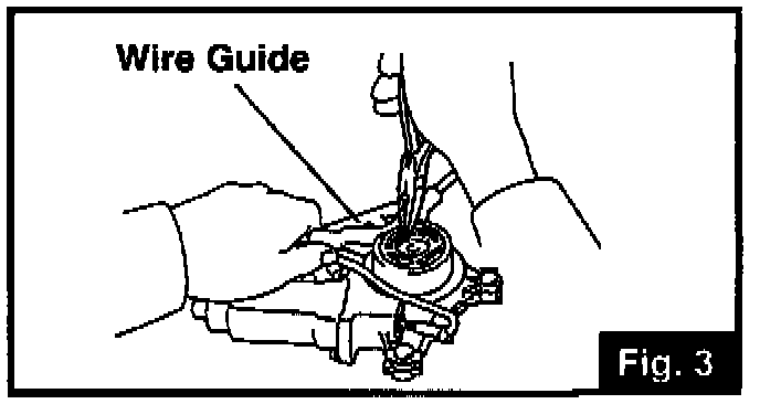 2. REMOVE WINDOW REGULATOR DRUM AND WIRE GUIDE FROM MOTOR HOUSING USING NEEDLE NOISE PLIERS (SEE FIGURE 3)