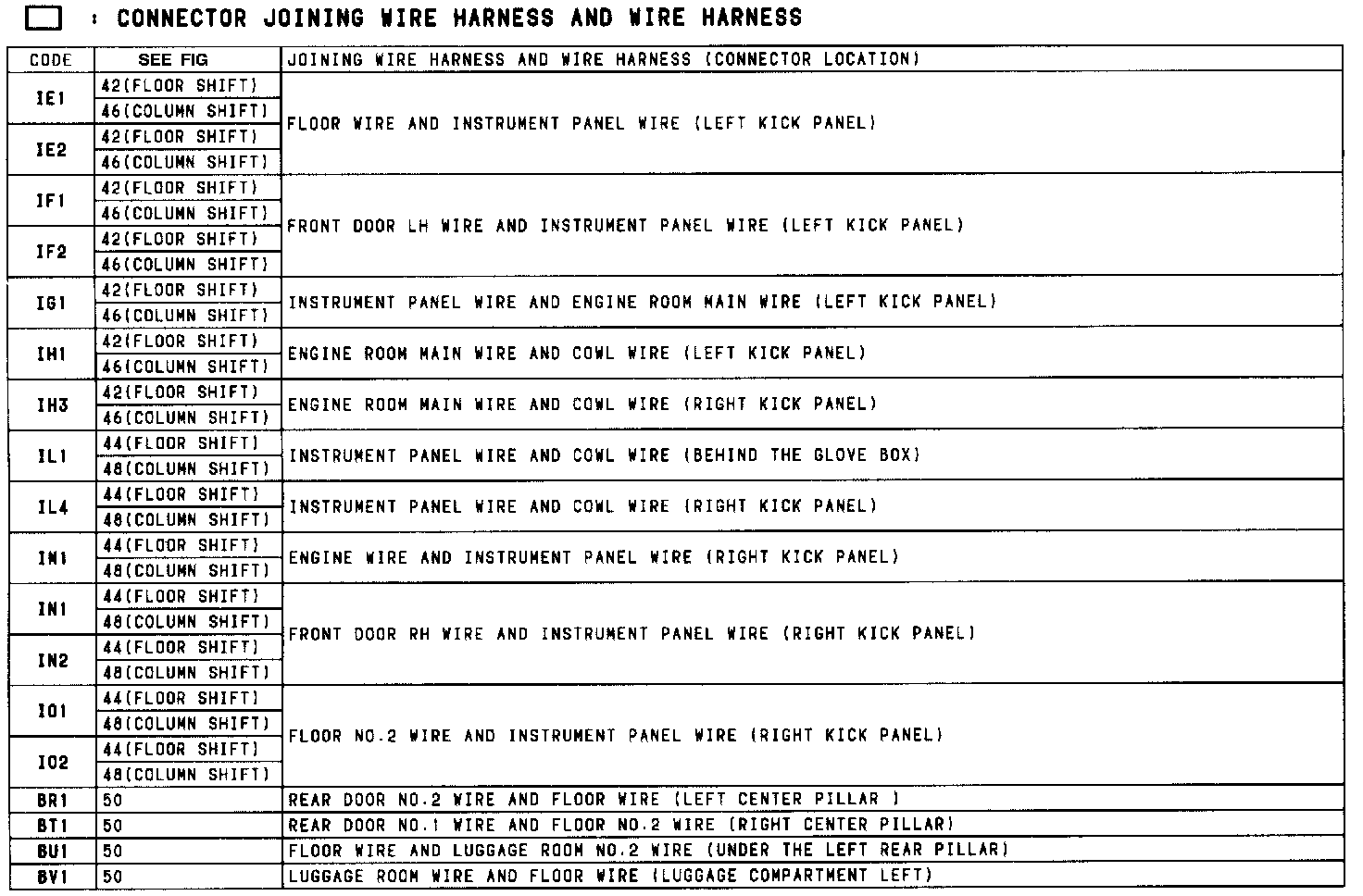 Location Of Connector Joining Wire Harness And Wire Harness (Floor Shift) (Fig 42):