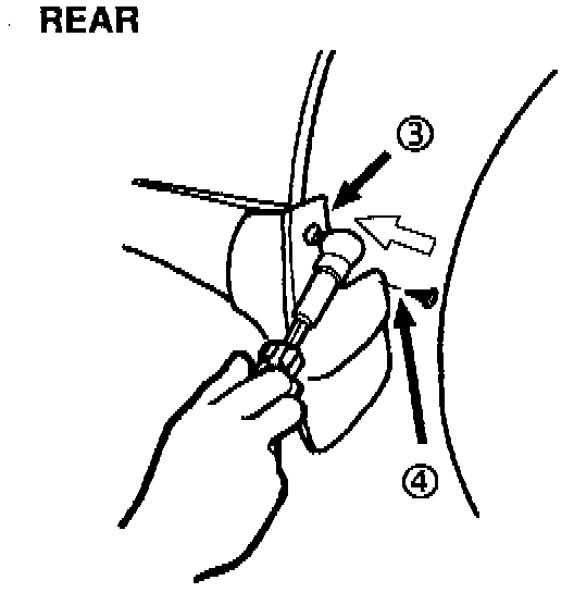 3. Secure rear mudguard at point (3) and (4) to vehicle using screws (w/washer) from kit (see Figure 4).