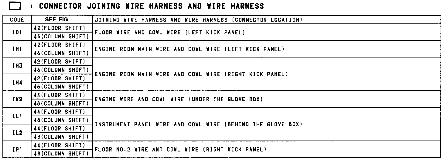 Location Of Connector Joining Wire Harness And Wire Harness (Floor Shift) (Fig 42):