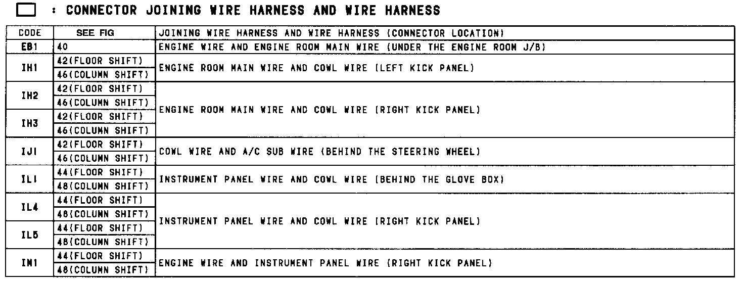 Location Of Connector Joining Wire Harness And Wire Harness (Floor Shift) (Fig 42):