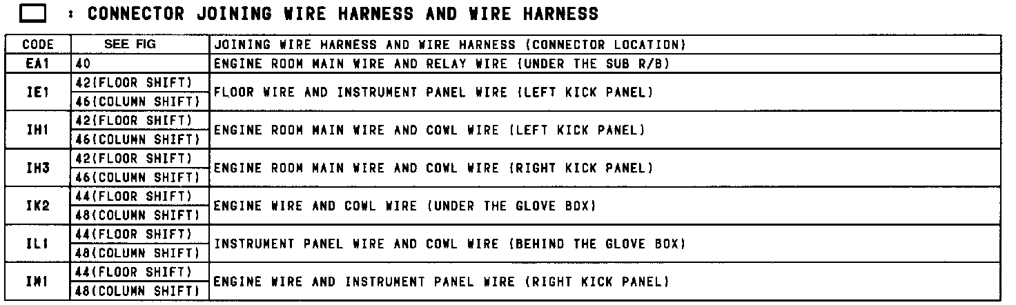 Location Of Connector Joining Wire Harness And Wire Harness (Floor Shift) (Fig 42):