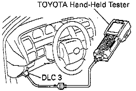 4. CONNECT THE Toyota HAND-HELD TESTER TO DATA LINK CONNECTOR 3 IN THE FUSE BOX AT THE LOWER LEFT OF THE INSTRUMENT PANEL.