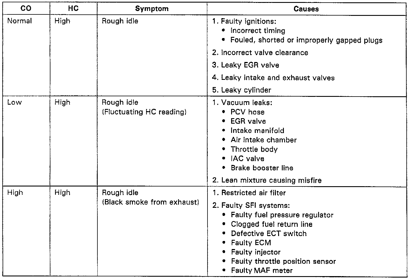 If the CO/HO concentration does not comply with regulations, troubleshoot in the order given below. See the table below for possible causes, and then inspect and correct the applicable causes if necessary.
