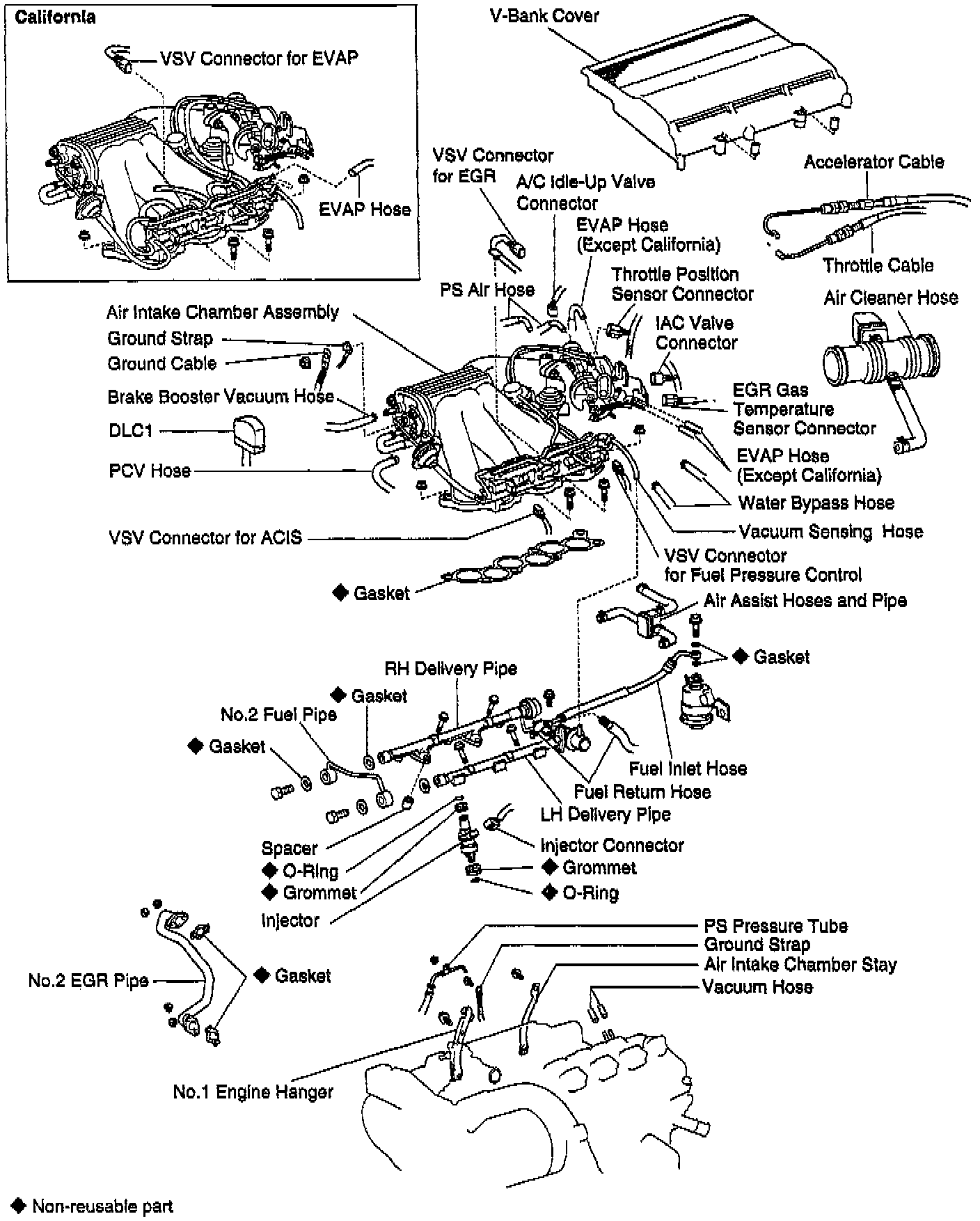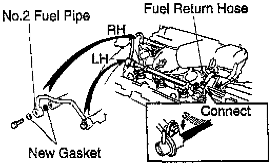- Remove the union bolt for the LH delivery pipe and 2 gaskets from the No.2 fuel pipe.
