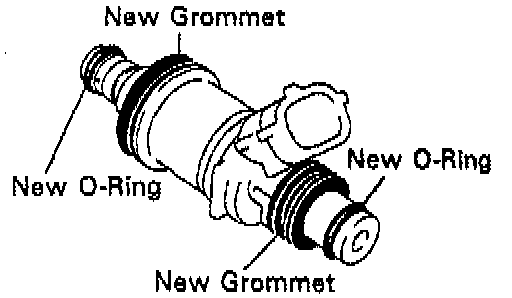 - Apply a light coat of spindle oil or gasoline to 2 new 0-rings and install them to each injector.