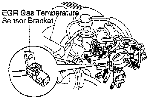 - Remove the 2 bolts, 2 nuts, EGR gas temperature sensor bracket, throttle body and gasket.