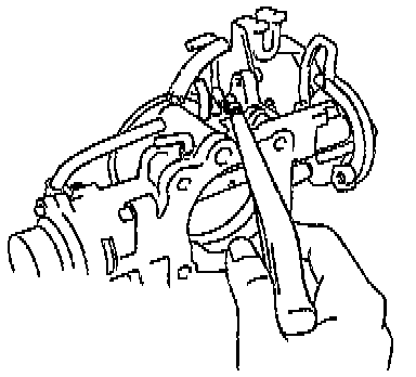 - Insert a 0.54 mm (0.021 in.) thickness gauge, between the throttle stop screw and stop lever.