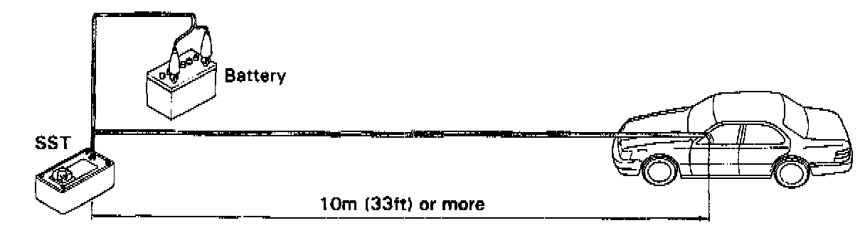 (a) Connect the SST red clip to the battery positive (+) terminal and the black clip to the battery negative (-) terminal.