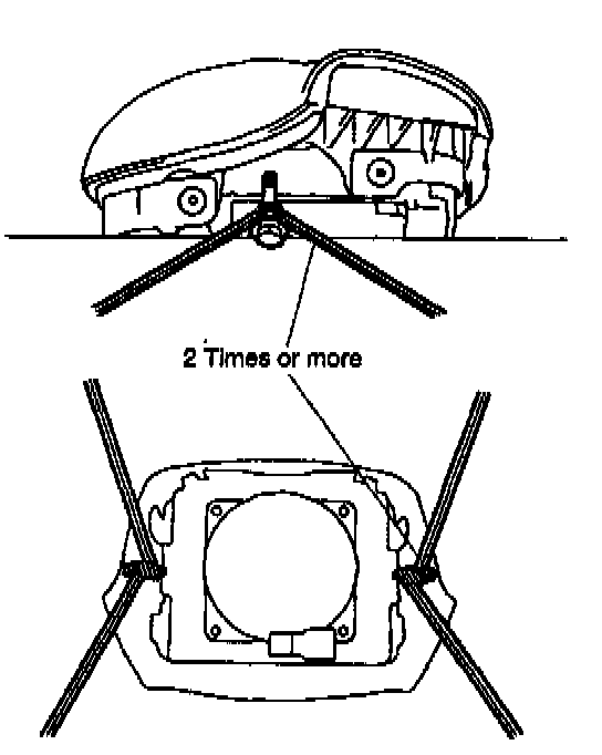 (1) Using 3 wire harnesses, wrap the wire harnesses at least 2 times each around the bolts installed on the left and right sides of the steering wheel pad.