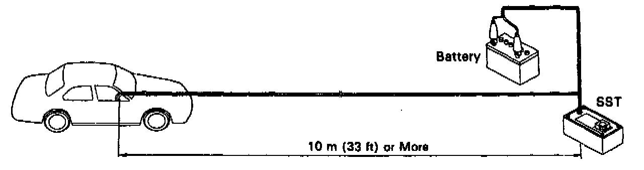 (a) Connect the SST red clip to the battery positive (+) terminal and the black clip to the battery negative (-) terminal.