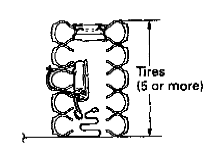 (b) Place at least 2 tires over the tire to which the front passenger airbag assembly is tied. The top tire should have the wheel installed.
